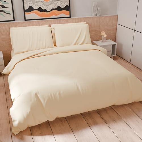 Utopia Bedding 4 Piece Sängkläder Set - Mjuk Borstad Microfiber Polyester - Påslakan (230x220cm), Spännlakan (150x200cm) med Kuddfodral (50x75cm), Vit