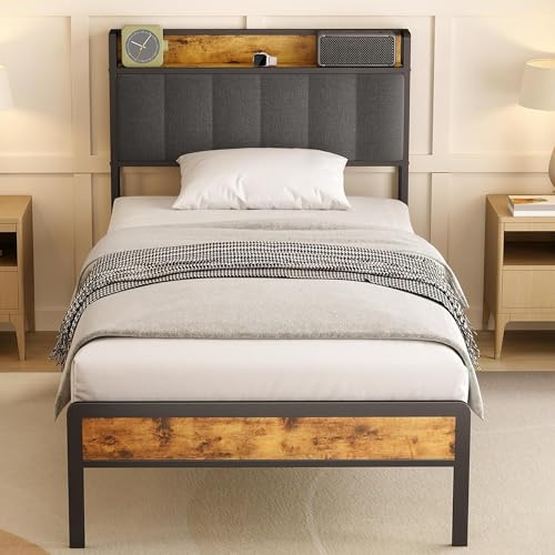 Bealife Sängklädsel, träsäng med metallsängram, vadderad piedestal, dubbelsäng med träribbor, stödhuvuddel, sängram (mörkgrå, 120 x 200 cm)