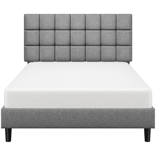 Yaheetech Sängklädsel, 140 x 200 cm, dubbelsäng med höjdjusterbar sänggavel, stabil sängram, tygsäng med ribbotten, vadderad sängram, säng, ljusgrå