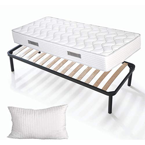 EVERGREENWEB Sängsats, sängram med lameller + madrass i vattenskum, 80 x 190 cm, höjd 20 cm, + 1 gratis kudde med minnesskum, ortopedisk, antibakteriell, allergivänlig, sängklädsel med massageeffekt