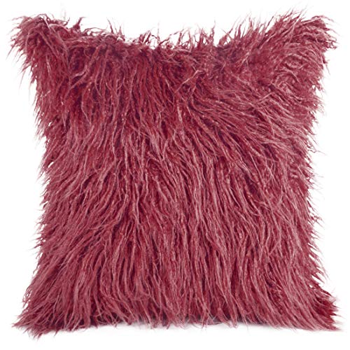 Eurofirany Kuddfodral kuddöverdrag soffkudde soffkudde sängkudde rumsdekoration elegant ädel exklusiv fuskpäls fluffig Wuschlig, Bordeaux, 45 x 45 cm, 2