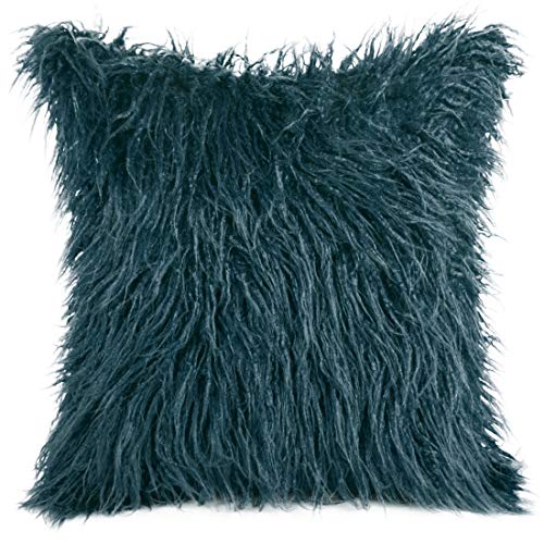 Eurofirany Kuddfodral kuddöverdrag soffkudde soffkudde sängkudde rumsdekoration elegant ädel exklusiv fuskpäls fluffig Wuschlig, marinblå, 45 x 45 cm, 2