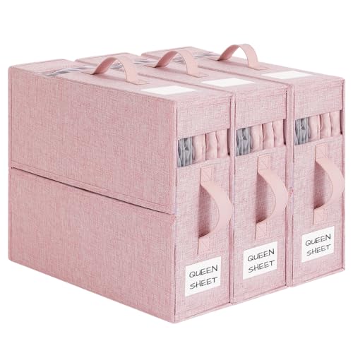 Dimoxii 3-pack förvaringsorganisatörer för sänglakan, vikbar sänglåda för påslakan med märkningskort, garderobslinne förvaringsväska för kung/drottning storlek med dragkedjor och klart fönster
