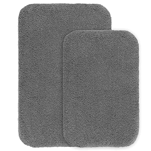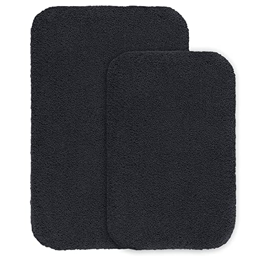 Halkfri badmatta 2-pack förtjockad badrumsmatta för badrum absorberande ultramjuk badrumsmatta fluffig mikrofiber sängmatta golvmatta, maskintvättbar - 40 x 60cm + 50 x 80cm (Mörkgrå)