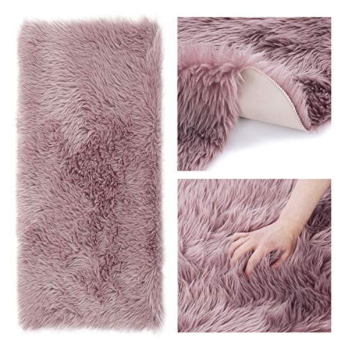 andiamo matta lammskinn – fuskpäls – fluffig matta sovrum – lämplig som sängmatta sovrum eller som pälsmatta vardagsrum – lammskinnsimitation lättskött 55 x 80 cm rosa