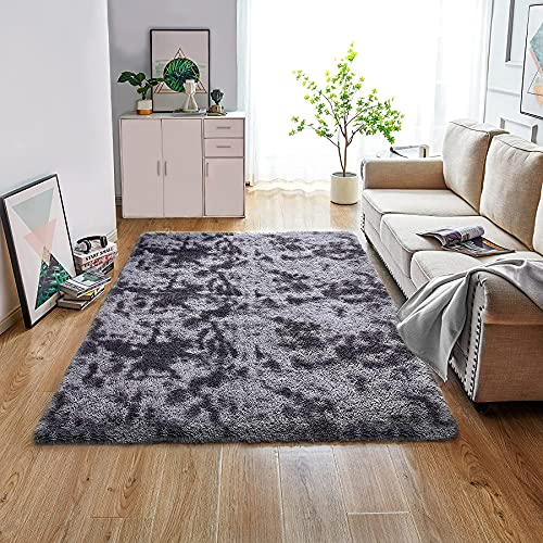 SOANNY Vardagsrumsmatta, sängmatta mjuk fluffig loungematta för vardagsrum sovrum sovsal barnkammare barnrum, lyxig batikfärgad lurvig prydnadsmatta dekor matta, mörkgrå, 90 x 150 cm