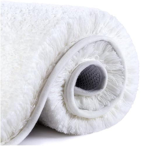 Halkfri badmatta förtjockad badmatta för badrum absorberande ultramjuk badrumsmatta matta fluffig mikrofiber sängmatta golvmatta, snabbtorkande, maskintvättbar - 50 x 80cm (Vit)