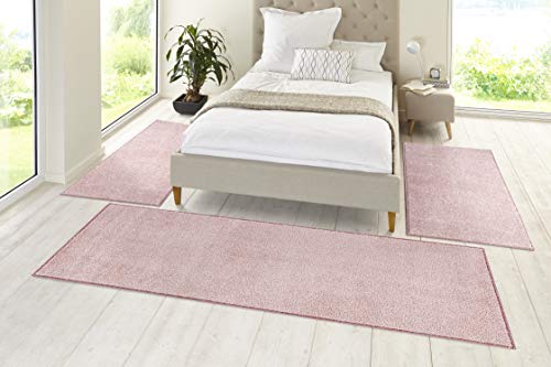 HANSE Home Pure Matta sänginramning 3 delar – sängmatta, sänglöpare, löpare med kort lugg enfärgad enfärgad löpare set för barnrum sovrum, rosa, 2 x 70 x 140 cm 1 x 70 x 240 cm