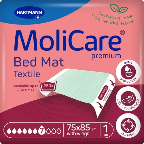 MoliCare Premium sängmatta, textil, 7 droppar, tvättbar inkontinens sängkuddar och madrassskydd, 75 x 85 cm med vingar. 1 st