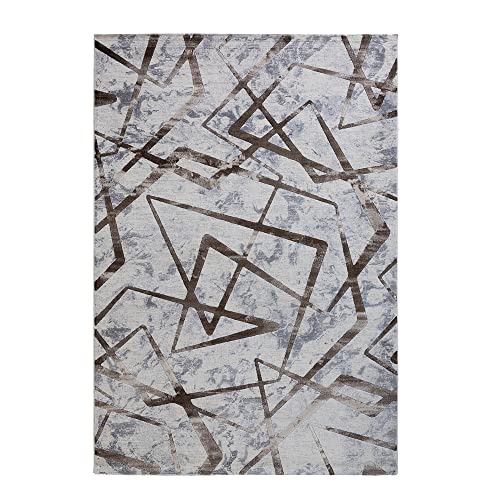 Teppich-Traum Modern sängmatta i behagliga färger, för sovrummet, allergivänlig, abstrakt mönster, grå och beige, 80 x 140 cm