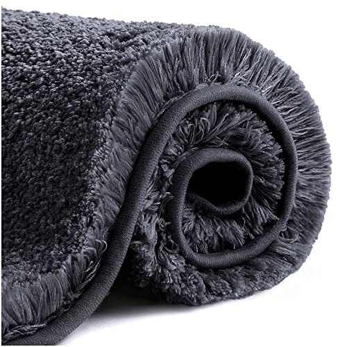 Halkfri badmatta förtjockad badmatta för badrum absorberande ultramjuk badrumsmatta matta fluffig mikrofiber sängmatta golvmatta golvmatta, snabbtorkande, maskintvättbar - 50 x 178cm (Mörkgrå)