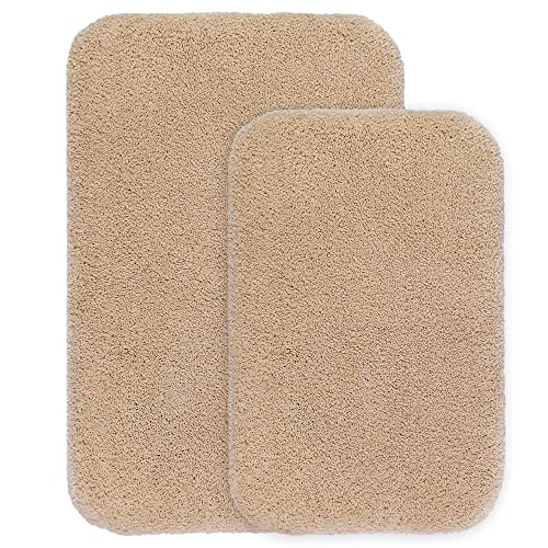 Halkfri badmatta 2-pack förtjockad badrumsmatta för badrum absorberande ultramjuk badrumsmatta fluffig mikrofiber sängmatta golvmatta, maskintvättbar - 40 x 60cm + 50 x 80cm (Biscotti Beige)