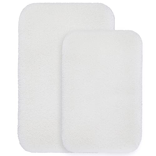 Halkfri badmatta 2-pack förtjockad badrumsmatta för badrum absorberande ultramjuk badrumsmatta fluffig mikrofiber sängmatta golvmatta, maskintvättbar - 40 x 60cm + 50 x 80cm (Vit)