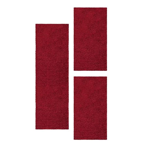 HomebyHome Spjälskydd sovrum 3 delar matta röd – tvättbart spjälskydd matta löpare set extra fluffig sängmatta sovrum sängset: