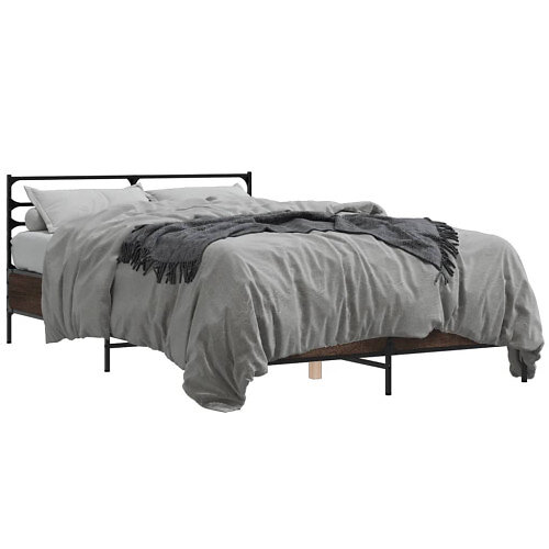 vidaXL Sängram utan madrass metall brun ek 120x190 cm