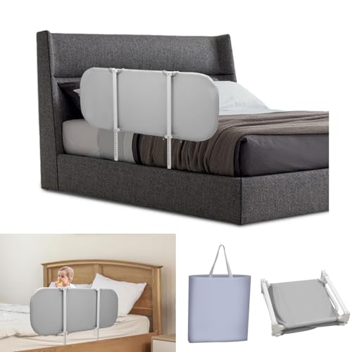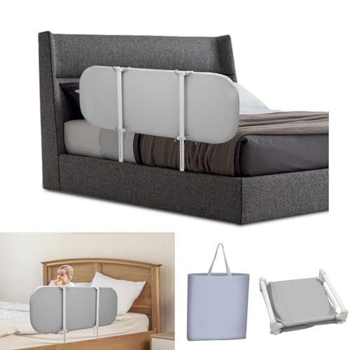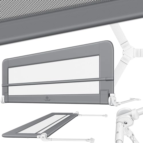 Mobysystem fällbart sängskydd för barn – vikbart fallskydd med remmar, spjälsängsskydd för säker sömn, färg: Grå – storlek: 150 x 42 cm