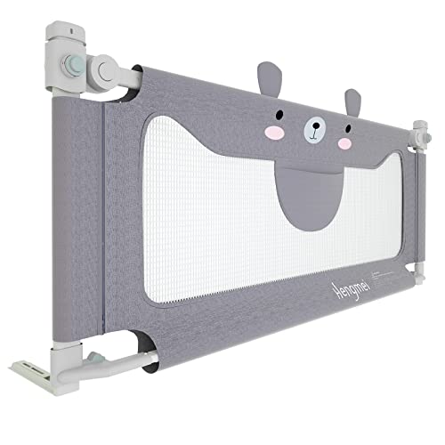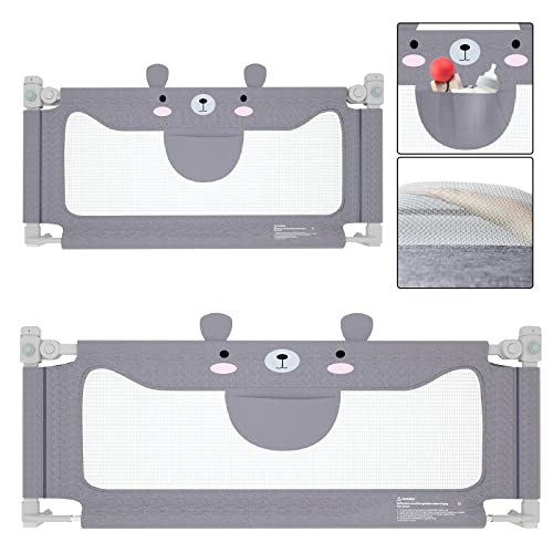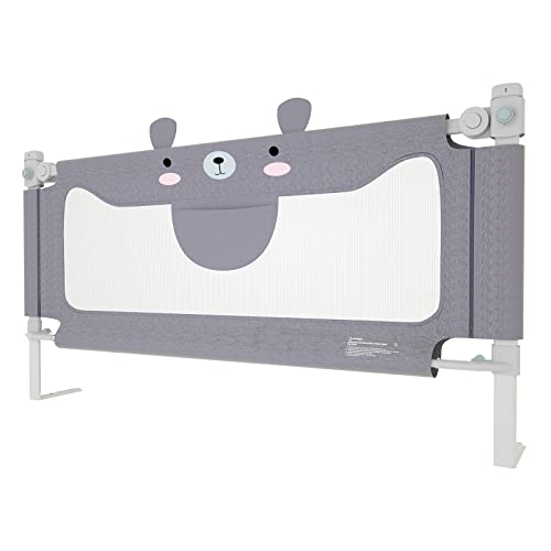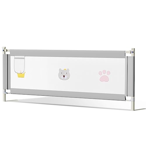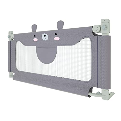 UISEBRT Sänggaller Sängskydd för Barn 180cm Justerbar höjd Barnsängsgaller för Familjesäng och Barnsäng med Björnmönster, Grå