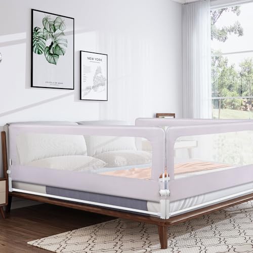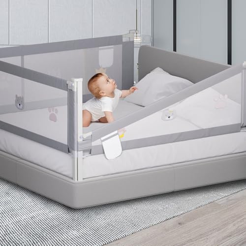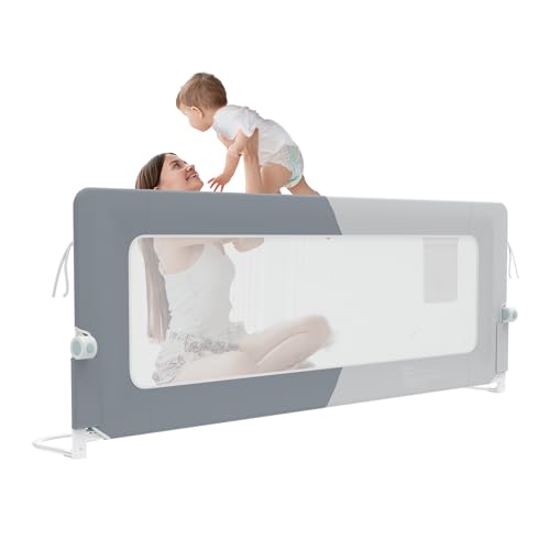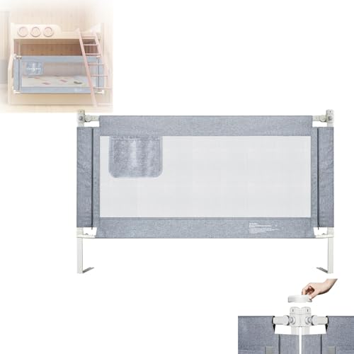TWOLIIN Sänggaller, 180 cm, spjälsängsskydd för vertikal lyft, fallskydd för barn, bebis, föräldrarnas säng, sängskydd justerbar höjd 73–93 cm, med förvaringsväska babygaller, grå
