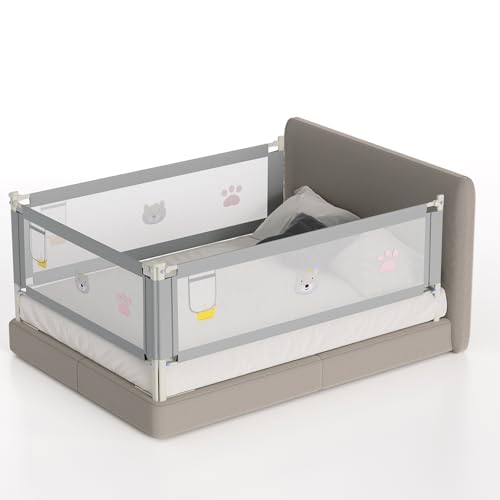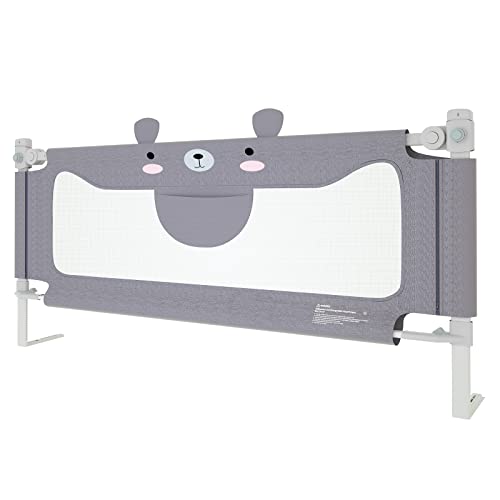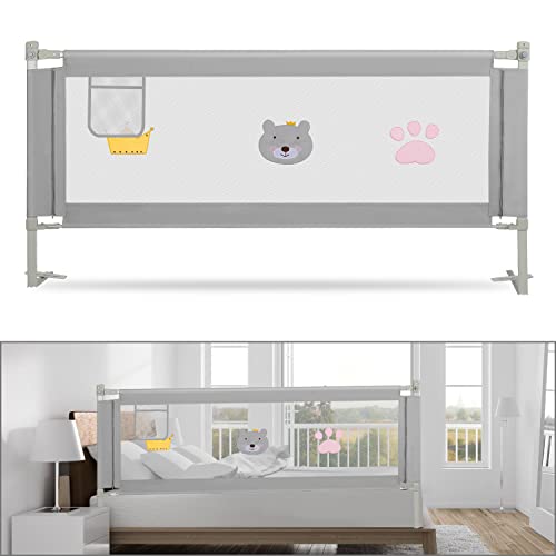 UISEBRT Sänggaller Sängskydd för Barn 200cm Justerbar höjd Barnsängsgaller för Familjesäng och Barnsäng med Björnmönster, Grå
