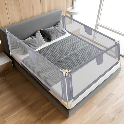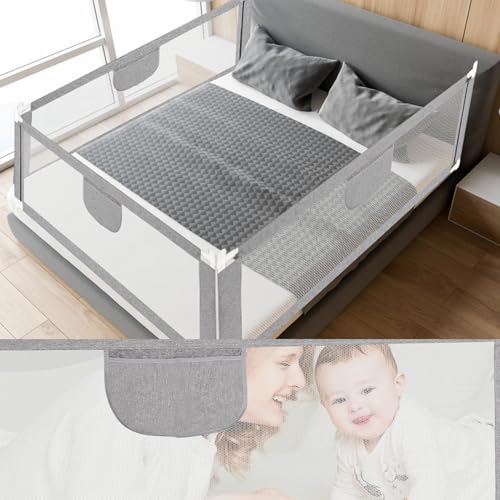 Ikodm Sänggaller för barn, 2 x 180 cm, sängskydd, justerbar höjd på 64–96 cm, fallskydd för säng, barnsängsgaller/babysängsgaller, säkert babysängsskydd, grått