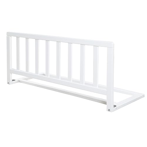 roba Sängskydd 90 cm Längd i Massivträ, säker fallskydd för spädbarn och barn från 18 månader, enkel montering utan borrning, Höjd 38 cm, fällbar med extra låsning, vit