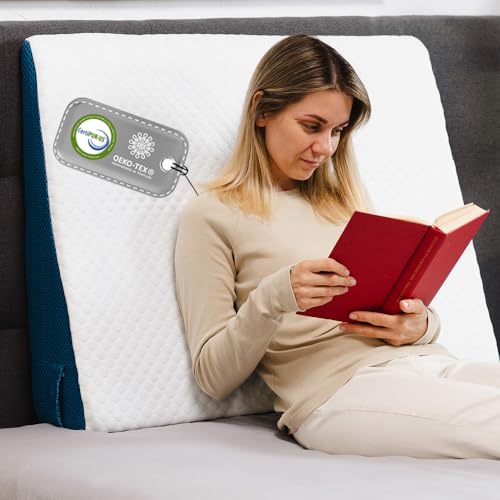 Ritalia® VUXEN KILKUDDE 65x60x20 cm för HÖJD MADRASS med GEL MEMORY | LÄSKUDDE för SÄNG med TVÄTTBART ÖVERDRAG | SÄNGSTÖD och HUVUDSTÖD för REFLUX & KOMFORT