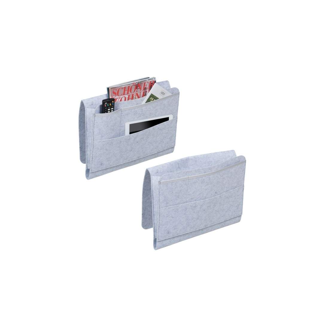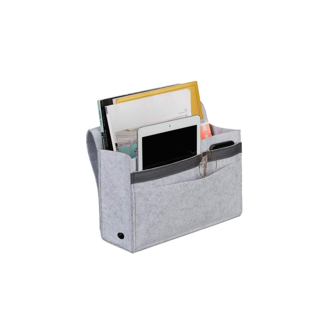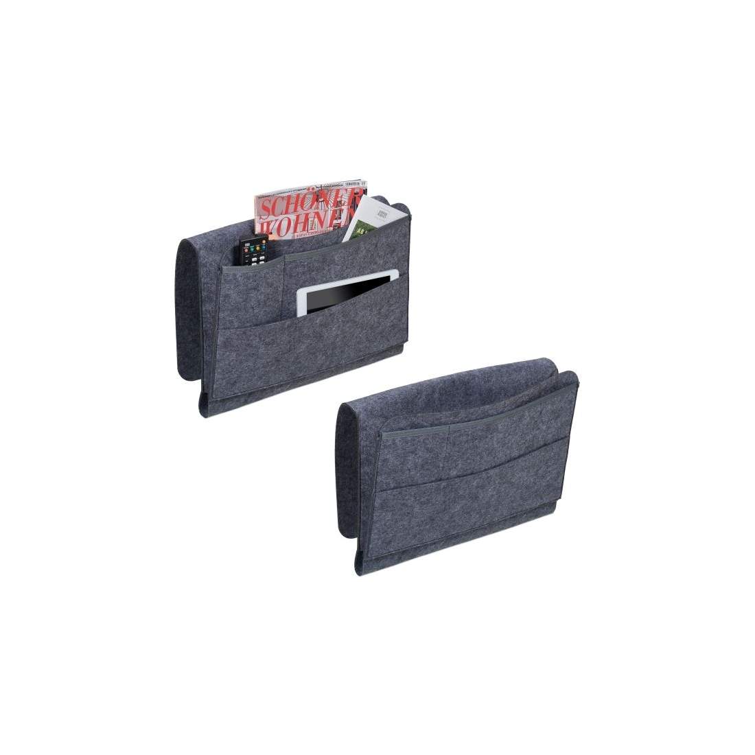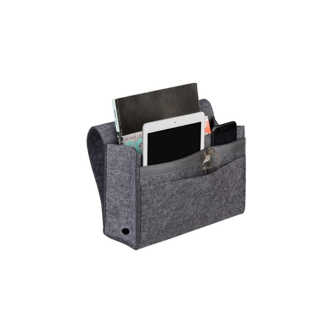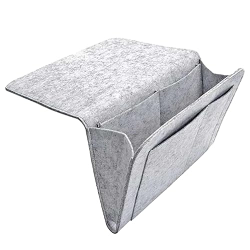 Sängväska i filt, 20 × 32 cm, sängväska för upphängning, 5 fack, sängväska, soffa, organisering, filt, nattduksbord, väska för bok, mobiltelefon, glasögon, fjärrkontroll (mörkgrå)