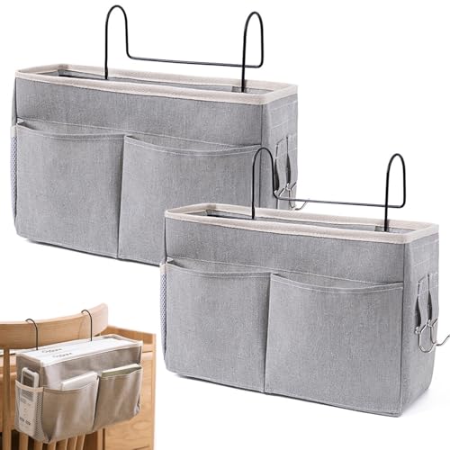 Qanye 2 stycken sängväska, hängande sängfickor, sängförvaringsfickor, sängfickor, sängficka, för kontor, kök, sovrum (grå)