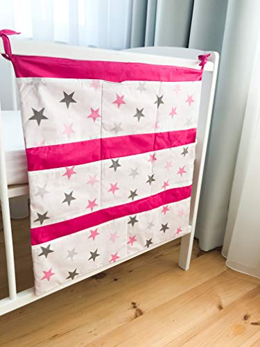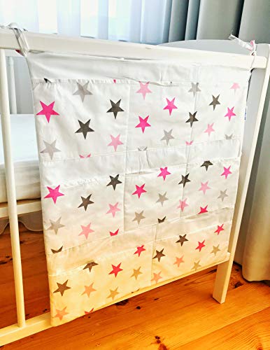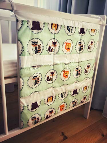 Wisebom Spjälsängsförvaringsficka, hängande sängorganisatör, 2 st 100 % bomull, babyförvaring, organiseringsväska, skötsel, sängväska, barnkammare, organiserare för blöjor, babyflaskor, leksaker