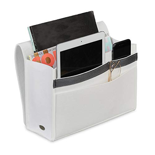 Relaxdays Sängväska, för upphängning, 6 fack, 4 kardborreband, filt, sängorganisatör HBT 27 x 31,5 x 5 cm, vit