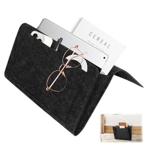 Sängväska i filt, 20 × 32 cm, sängväska för upphängning, 5 fack, sängväska, soffa, organisering, filt, nattduksbord, väska för bok, mobiltelefon, glasögon, fjärrkontroll (svart)