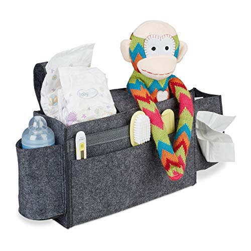 Relaxdays Sängväska loftsäng, 8 fack, baby & vårdsäng, filt sängorganisatör för upphängning, HBT 23 x 43 x 11 cm, mörkgrå