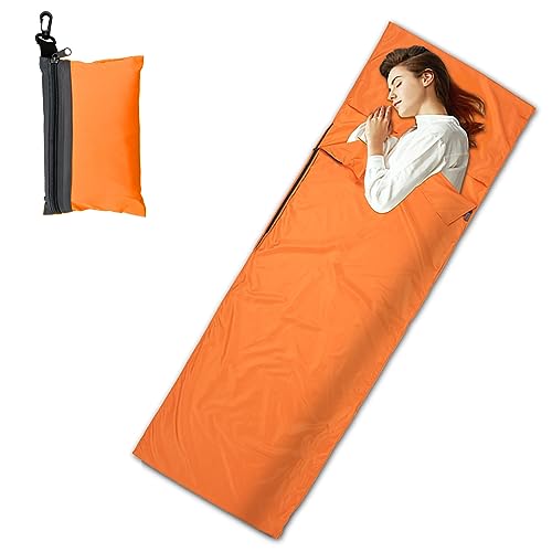 Sovsäcksfoder 210 x 70 cm, bärbart lätt reselakan, camping, sovsäck med kuddfickor för affärer, vandring, bergsklättring, hem, camping, sängväska, vandrarhem, picknick, tåg (orange)