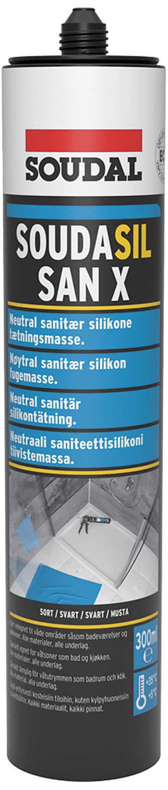 Soudasil SanX sanitetssilikon 300 ml svart.