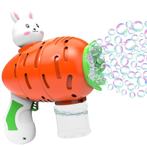 Tvålbubbelmaskin för barn, helautomatisk såpbubbelpistol, morotshare tvålbubblor pistol påskleksak med 2 flaskor såpbubbelvätska, bubbelpistol för utomhus, födelsedagar, fester