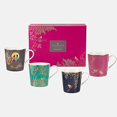 Sara Miller Chelsea te för ett set av Portmeirion, 35 ml – fin kinesisk tekanna och tekopp set med 22 K gulddetaljer, stapelbar design för eftermiddagste – elegant presentidé för mammor