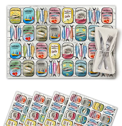 Vilber, Uppsättning av 4 individuella vinyl skyddsmedel tvättbar, vattentät, anti-fläckar, anti-glidande, icke-stick och värmebeständig marin stil, fisk