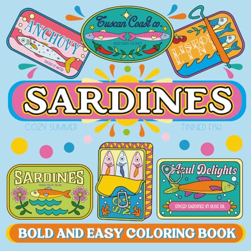 Sardines Cozy Summer Tinned Fish Bold and Easy Coloring Book for Adults and Teens: Cute Vintage Coastal Mediterranean Canned Seafood Designs for Comfy ... and Big Chic Decor Foodie Friend Designs