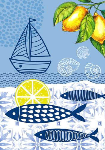 Vintage Sardines Notebook, Maritime Style with Lemons: Lined A5 notebook – perfect for journaling, planning & creative writing