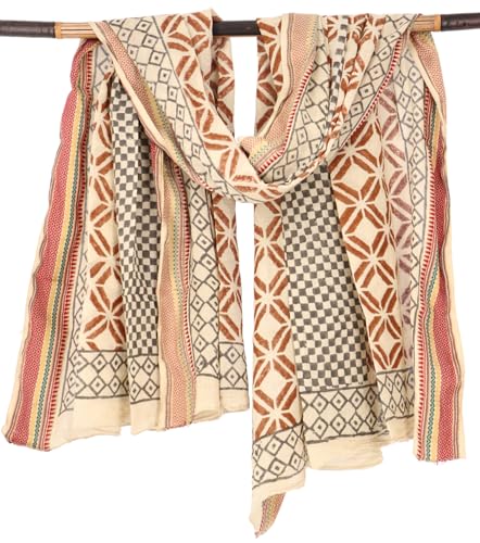 Magisk sängkläder strandtäckning för kvinnor Sarong 100 % bomull sarong indisk handblockstryck, baddräkt pareo omlottkjol strand bikini täcka lång (183 x 112 cm), BEIgE, Sarong