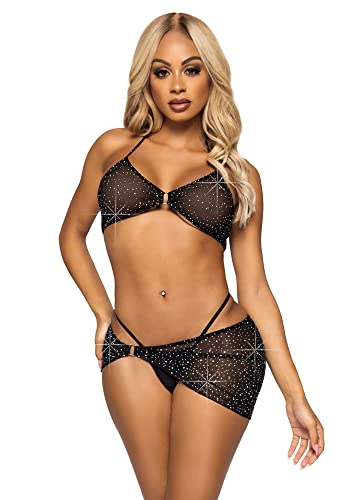 Leg Avenue Dam 3 st South Beach Sarong och bikini set strass underkläder för kvinnor, Svart, L