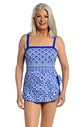 Maxine of Hollywood Dam Bandeau Sarong One Piece baddräkt, Kobolt//grekiskt kakel, 42