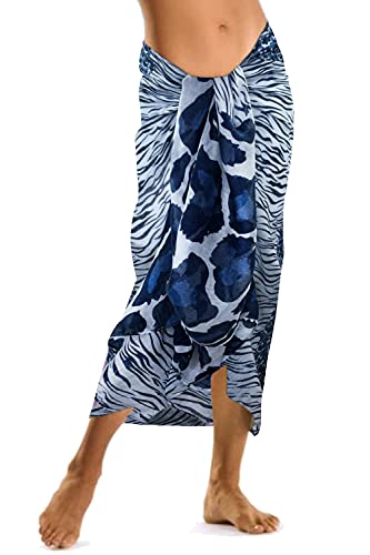 TOSKATOK Damer flickor djurtryck sarong kjol strand täcka upp halsduk wrap, BLÅ, en storlek