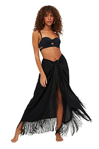 Dam Beach Sarong, Snygg Wrap Pareo med Tofs Mjuk Baddräkt Täcka Upp Kjol Sarong Wrap för Kvinnor Summer Beach (Svart)