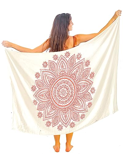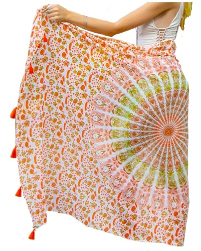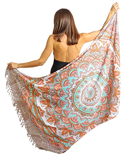 Magisk sängkläder strandtäckning för kvinnor Sarong 100 % bomull sarong indisk handblockstryck, baddräkt pareo omlottkjol strand bikini täcka lång (183 x 112 cm), BEIgE, Sarong