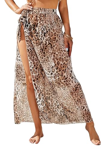 Koerye Damsarong pareo för stranden chiffong baddräkt omlottkjol strand kjol kvinnor sommar bikini täcka upp lång strandklänning sarong pareo för strandsemester, leopard, one size