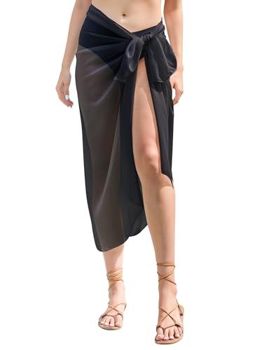 Heveer Dam strand wrap sarong lång cover up chiffong baddräkt omlottkjolar pareo för stranden bikini baddräkt, svart, M