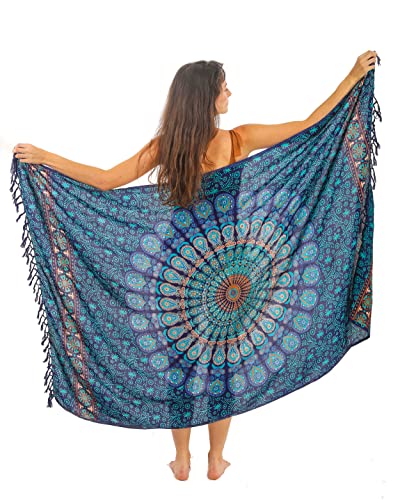 Mandala Life ART grön pareo kvinnor med tofsar bomull stor strand sarong strandhandduk omlottkjol strandkjol gobeläng omlottduk bikini cover up duk för baddräkt, mandalablue, En Storlek