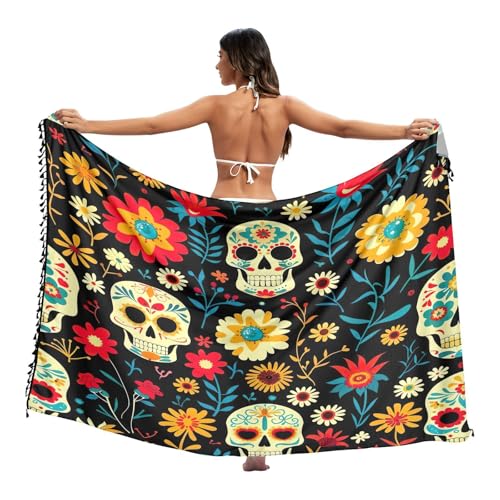 RPLIFE Day of Dead Skulls Beach Sarong Wraps för kvinnor Frans Strand Sarong Kvinnor, Large, De döda skallarnas dag, L