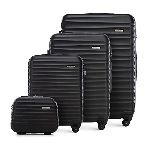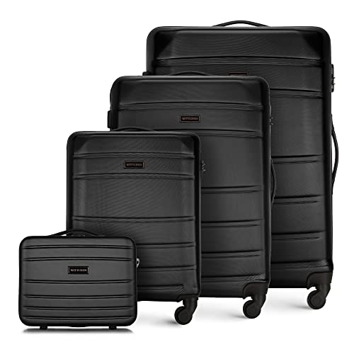 WITTCHEN GROOVE Line | Set med 4 resväskor | Resväska med sminkväska | Resväska med ABS-hölje | Nummerlås, teleskophandtag | 4 länkhjul | S+M+L+Kosmetikväska Svart SAS/Ryanair/Norwegian/Wizz Air